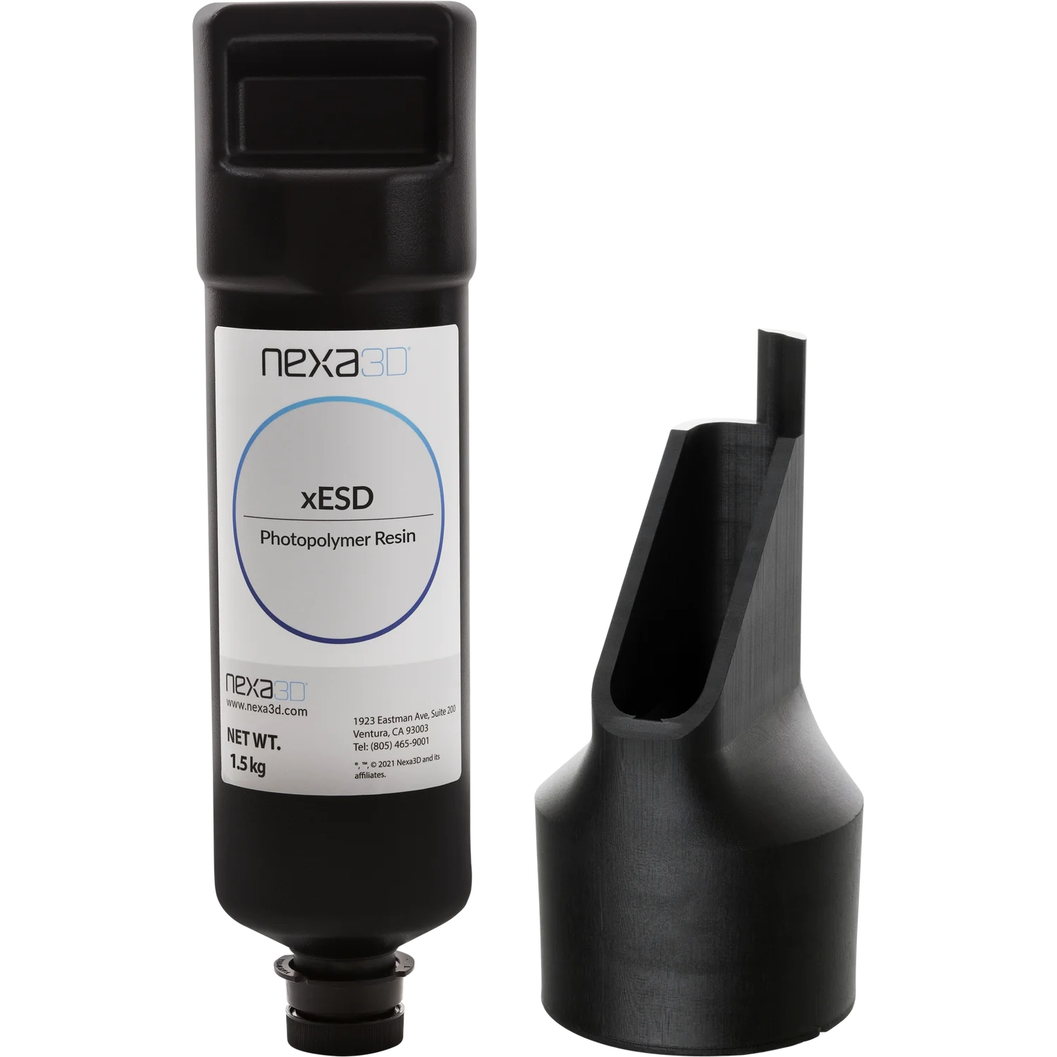 xESD is a black, rigid, static-dissipative photopolymer resin using a urethane dimethacrylate base that includes a stable dispersion of discrete functionalized carbon nanotubes to achieve consistent static dissipative properties.